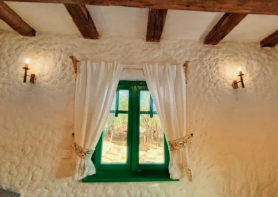Mândră Ioană is designed to comfortably accommodate up to 4 adults and 2 children, with two bedrooms, each with a double and a single bed. On the ground floor, you will find a special atmosphere, with a fireplace heated by the stove, which will give you moments of relaxation as in times of yesteryear. The fully equipped kitchen, including an oven, will inspire you to prepare delicious meals, while the living room, equipped with a video projector, ensures an unforgettable evening for the whole family.